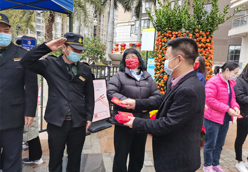 除夕,深圳再度出現(xiàn)疫情。鴻運(yùn)物業(yè)啟動疫情防控緊急預(yù)案,鴻運(yùn)物業(yè)黨支部召開線上支委會,聯(lián)合下發(fā)《關(guān)于應(yīng)對深圳“0131”疫情的通知》,要求各物業(yè)服務(wù)中心嚴(yán)格按照區(qū)、街道、社區(qū)部署,將疫情防控措施全面落實(shí)到位,同時對特殊群體和特殊情況靈活處理,保證防疫有力度也有溫度。鴻運(yùn)物業(yè)堅(jiān)持紅色思想引領(lǐng),以“紅色物業(yè)”為著力點(diǎn),充分發(fā)揮鴻運(yùn)物業(yè)黨支部黨員應(yīng)急救援隊(duì)在疫情防控工作中的中堅(jiān)力量。鴻運(yùn)物業(yè)黨支部黨員應(yīng)急救援隊(duì)由黨員、一線保安員、志愿者組成,緊急時刻、防疫一線,他們的身影從不缺席。紅馬甲披在黑色的保安服上,顯得更加醒目。2月7日,鴻運(yùn)物業(yè)星悅豪庭物業(yè)服務(wù)中心保安員盧育林同志執(zhí)勤時,發(fā)現(xiàn)一輛黑車載著廣西百色返深人員在小區(qū)附近下車,立即通報社區(qū),獲得新橋街道、上星社區(qū)、上星股份公司大力褒獎。多名領(lǐng)導(dǎo)親臨鴻運(yùn)物業(yè)星悅豪庭物業(yè)服務(wù)中心,慰問盧育林同志,對鴻運(yùn)物業(yè)的防疫工作給與高度贊賞。 2月8日,公司和支部一同慰問春節(jié)防疫員工,支部代表盧杏、鐘恩榮同志前往公司各物業(yè)服務(wù)中心,對春節(jié)在崗員工的辛勤付出表示感謝,并致以新年的祝福。 一個支部就是一座“堡壘”,一名黨員就是一面“旗幟”。面對疫情,鴻運(yùn)物業(yè)黨支部“疫”往直前、“疫”無反顧、“疫”不容辭,鴻運(yùn)物業(yè)黨支部黨員應(yīng)急救援隊(duì)竭力發(fā)揮自身熱量,用小小光芒匯聚堅(jiān)實(shí)防疫力量。