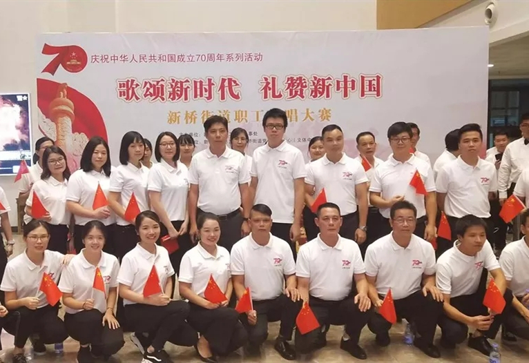 時(shí)光如水,歲月如歌,祖國(guó)70周年華誕即將到來(lái),為強(qiáng)化愛(ài)國(guó)之志、激勵(lì)愛(ài)國(guó)之情,新橋街道“歌頌新時(shí)代·禮贊新中國(guó)”職工大合唱比賽,于9月27日晚上19:30,在新橋文化藝術(shù)中心大劇院圓滿舉行。上星工作站攜手鴻運(yùn)物業(yè)28名員工,組成上星合唱隊(duì),代表上星社區(qū)參加了此次合唱比賽,現(xiàn)場(chǎng)演唱“我的中國(guó)心”“歌聲與微笑”兩首曲目,最終斬獲佳績(jī),贏得銅獎(jiǎng)。 上臺(tái)后,大家抬頭挺胸,手舉國(guó)旗于心口,現(xiàn)場(chǎng)莊嚴(yán)肅穆,隨著“我的中國(guó)心”前奏響起,隊(duì)員們凝神屏氣,將滿腔的愛(ài)國(guó)熱情融入曲目的演唱中。唱完,現(xiàn)場(chǎng)掌聲雷動(dòng)。改編后的“歌聲與微笑”節(jié)奏更加的輕快、靈動(dòng),大家活潑的演唱風(fēng)格、燦爛的微笑,將現(xiàn)場(chǎng)氛圍帶到了頂點(diǎn),臺(tái)下觀眾紛紛跟著節(jié)拍揮舞熒光棒。完成表演后,大家紛紛表示非常的盡興,并為觀眾的熱情互動(dòng)倍感鼓舞。 在此,感謝新橋街道總工會(huì)舉辦此次活動(dòng),感謝上星工作站對(duì)此次合唱的用心安排,也感謝黃老師對(duì)合唱隊(duì)的諄諄教導(dǎo)!我們沒(méi)有扎實(shí)的演唱功底,缺乏成熟的演唱技巧,你因材施教,教會(huì)了我們用情感去打動(dòng)人心,用歌曲去表達(dá)鴻運(yùn)物業(yè)這個(gè)團(tuán)體的愛(ài)國(guó)熱情。最后,鴻運(yùn)物業(yè)在此祝大家國(guó)慶快樂(lè),祝祖國(guó)母親永遠(yuǎn)繁榮富強(qiáng)!