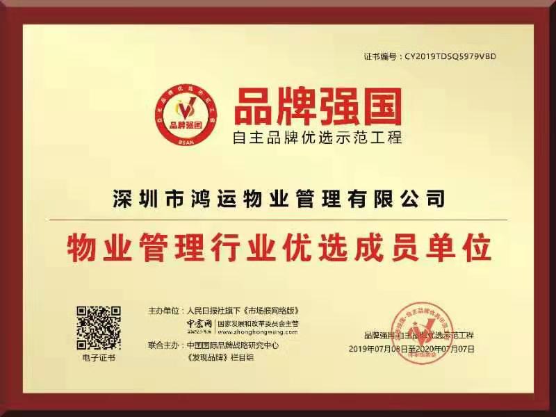 十年磨一劍,一朝試鋒芒。鴻運(yùn)物業(yè)品牌建設(shè)和提質(zhì)增效工作取得顯著成績(jī),于2018年10月至今年7月,在短短數(shù)月內(nèi),先后斬獲2018年物業(yè)服務(wù)行業(yè)中國(guó)優(yōu)選品牌、2018中國(guó)(物業(yè)管理)行業(yè)十大創(chuàng)新品牌、2018中國(guó)創(chuàng)新先鋒企業(yè)、2019年物業(yè)管理行業(yè)優(yōu)選成員單位四大獎(jiǎng)項(xiàng),鴻運(yùn)物業(yè)董事總經(jīng)理陳總更是被評(píng)選為2018年中國(guó)新經(jīng)濟(jì)(年度)影響力人物。 擇優(yōu)而選,彰顯實(shí)力與口碑 2018年9月,經(jīng)由中國(guó)優(yōu)選品牌促進(jìn)發(fā)展工程深圳地區(qū)組委會(huì)實(shí)地調(diào)查和嚴(yán)格篩選,“鴻運(yùn)物業(yè)”脫穎而出,被評(píng)選為物業(yè)服務(wù)行業(yè)中國(guó)優(yōu)選品牌,獲得央視CCTV《發(fā)現(xiàn)品牌》欄目報(bào)道,同時(shí)公司信息有幸刊登在中國(guó)優(yōu)選品牌促進(jìn)發(fā)展工程官方網(wǎng)站上。 突破創(chuàng)新,贏得專家和市場(chǎng)肯定 2019年1月,鴻運(yùn)物業(yè)陳總受邀作為行業(yè)代表嘉賓,在北京人民大會(huì)堂參加2019中國(guó)新經(jīng)濟(jì)品牌峰會(huì)暨創(chuàng)新榜樣巡禮活動(dòng)會(huì)議,被現(xiàn)場(chǎng)授予2018中國(guó)(物業(yè)管理)行業(yè)十大創(chuàng)新品牌、2018中國(guó)創(chuàng)新先鋒企業(yè)的獎(jiǎng)?wù)?,以表彰鴻運(yùn)物業(yè)在中國(guó)物業(yè)行業(yè)上的創(chuàng)新投入。 銳意進(jìn)取,推動(dòng)中國(guó)品牌崛起 2019年7月,鴻運(yùn)物業(yè)協(xié)助國(guó)家發(fā)改委、人民日?qǐng)?bào)社,推動(dòng)品牌強(qiáng)國(guó)計(jì)劃、自主品牌優(yōu)選示范工程。鴻運(yùn)物業(yè)作為物業(yè)管理行業(yè)全國(guó)首家入圍品牌強(qiáng)國(guó)計(jì)劃,與支付寶、碧桂園、恒大集團(tuán)、格力等強(qiáng)勢(shì)占領(lǐng)稀缺性資源,緊跟國(guó)家政策推動(dòng)品牌戰(zhàn)略方針,謀跨越、促升級(jí)、破壁壘、猛崛起。 未來(lái),鴻運(yùn)物業(yè)將再接再...