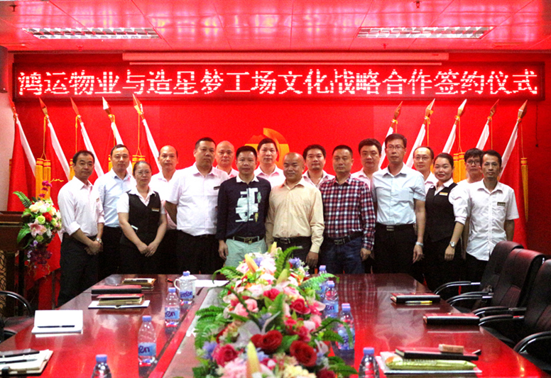 2019年10月31日下午,我司與惠州市造星夢(mèng)工場(chǎng)文化傳播有限公司戰(zhàn)略合作簽約儀式圓滿舉辦,造星夢(mèng)工場(chǎng)總經(jīng)理盧昶龍先生蒞臨我司交流,我司總經(jīng)理陳喜祥先生攜全體高層領(lǐng)導(dǎo)進(jìn)行了隆重接待。 雙方就惠州物業(yè)項(xiàng)目、安保項(xiàng)目、房屋租售項(xiàng)目三個(gè)方面達(dá)成合作共識(shí),并現(xiàn)場(chǎng)簽署戰(zhàn)略合作協(xié)議。我司向造星夢(mèng)工場(chǎng)盧總、劉總依次介紹鴻運(yùn)高層員工,然后共敘佳話,同繪愿景。 今后,雙方將共同開(kāi)拓惠州市場(chǎng),充分發(fā)揮彼此優(yōu)勢(shì),互學(xué)互鑒,互利共贏。